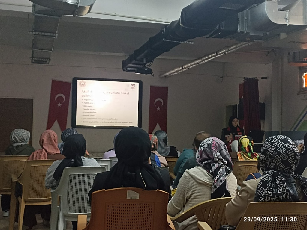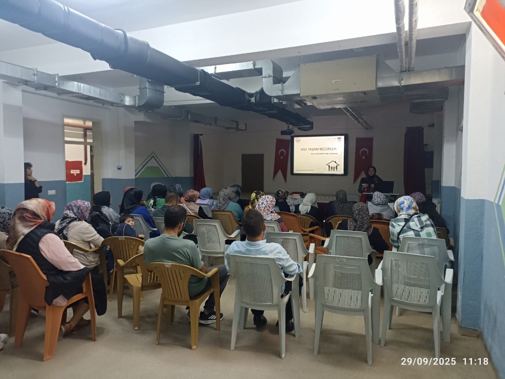 Okulumuzda Ünye Sosyal Hizmetler Merkezi Müdürlüğü tarafından velilere yönelik "AİLE YAŞAM BECERİLERİ SEMİNERİ" düzenlendi. Seminerde aile içi iletişimin temel unsurları ve iletişimde yaşanan sorunlara ve çözüm yollarına yönelik bilgilendirme yapıldı.